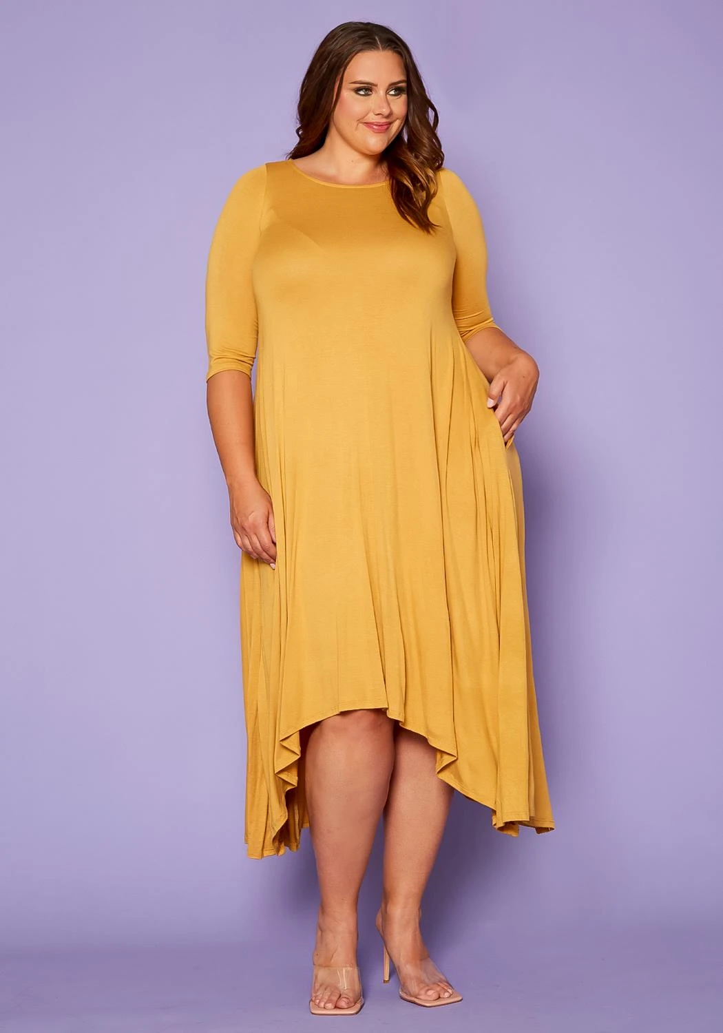 Asoph Plus Size Asymmetric Cut Fit & Flare Midi Dress
