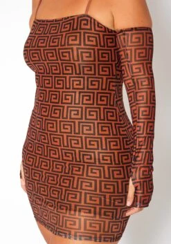 Asoph Plus Size Greek Key Print Bodycon Mini Dress & Glove Set