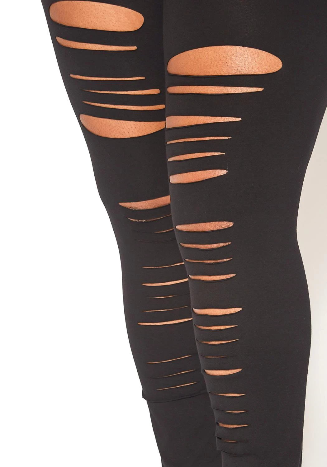 Everyday type of leggings for plus size women featuring multiple front slit hems and mid rise style.