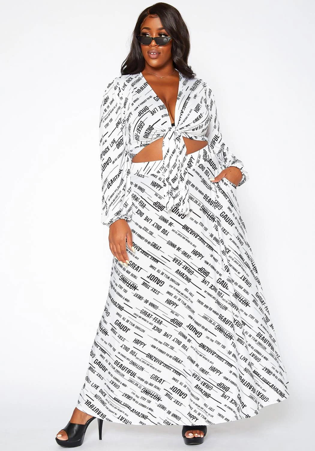 Asoph Plus Size Statement Crop Top & Maxi Skirt Set
