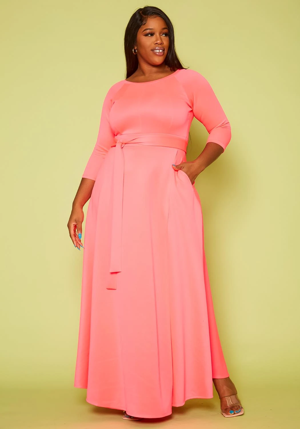 Have a casual yet fashionable day in our lovely women’s maxi dress which comes in fit & flare style. Features a knot front detail, 3/4 long sleeves and useful side pockets.