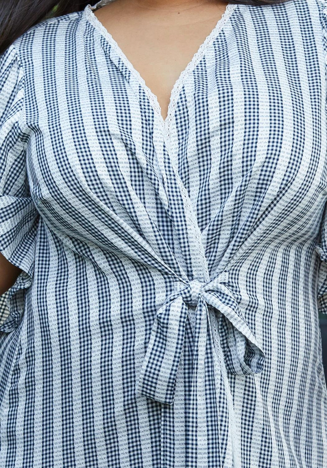 Nurode Plus Size Lace Trim Tie Front Maxi Dress