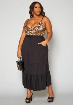 Plus Size women’s polkadot printed pleated midi skirt with elastic waist band.