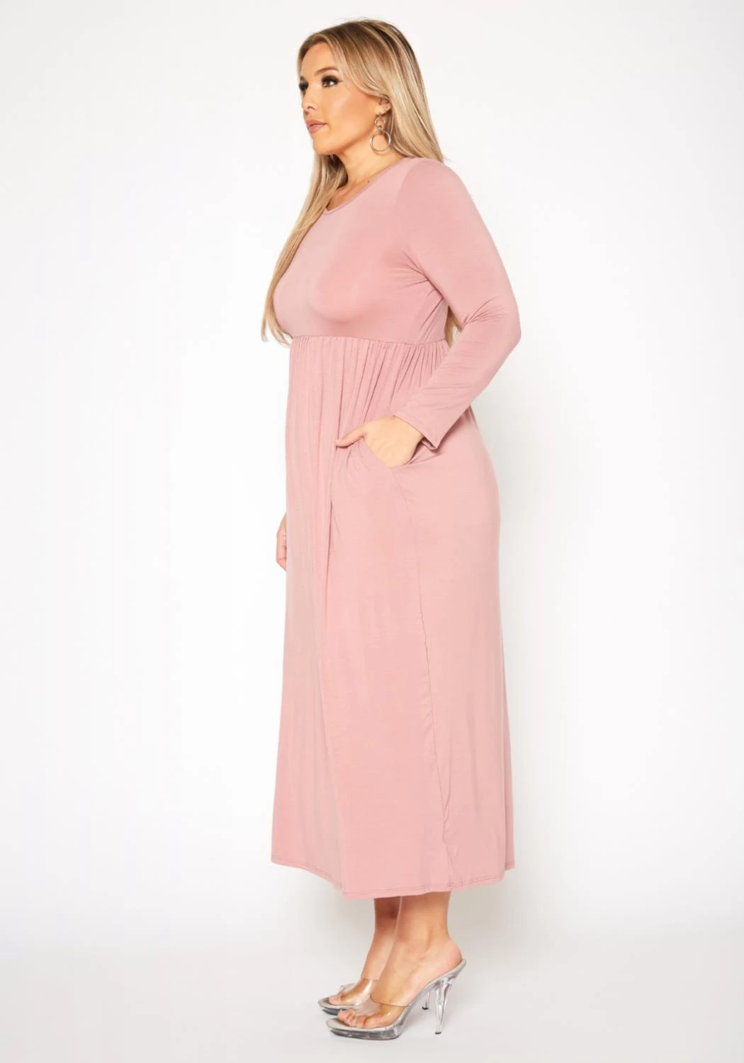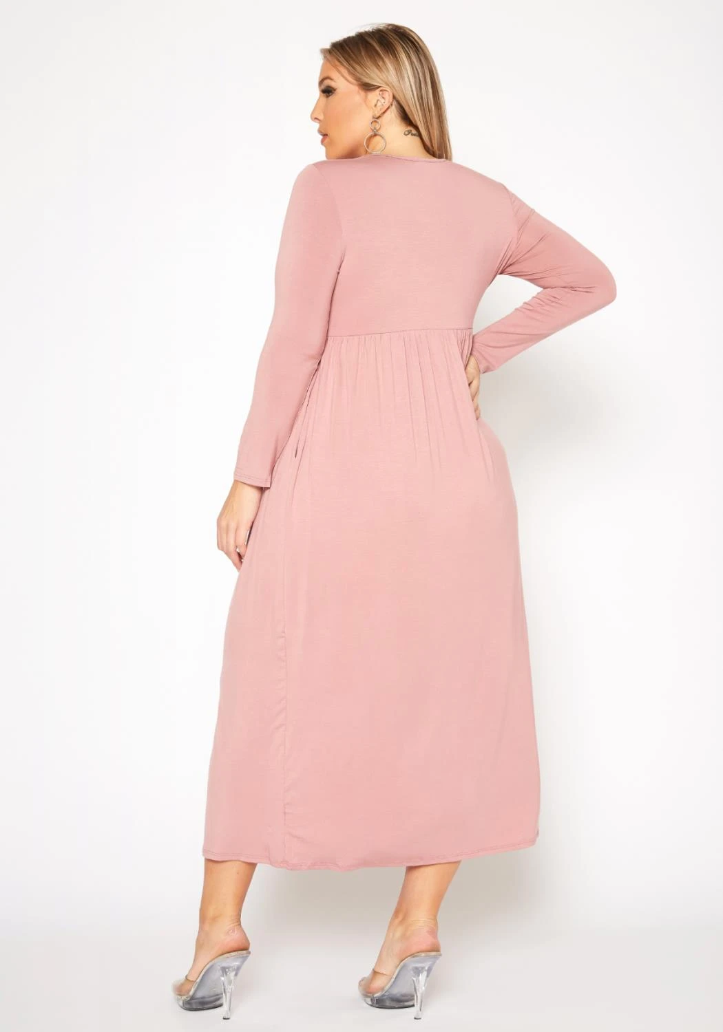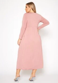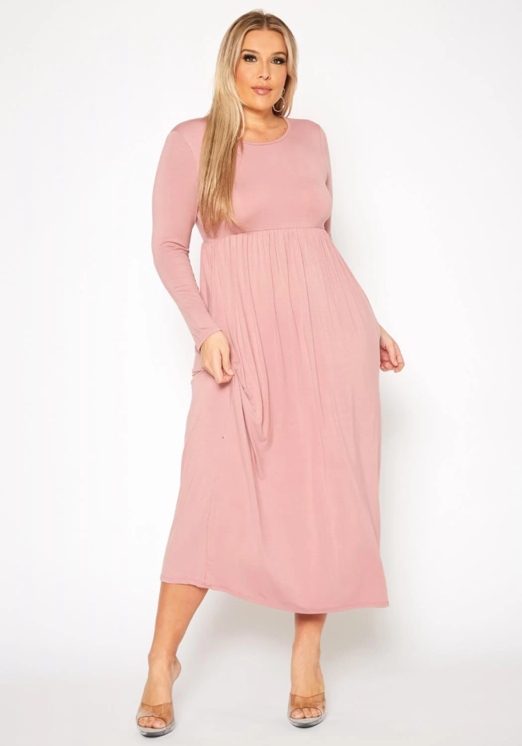 Plus Size Basic Long Sleeve Fit & Flare Maxi Dress