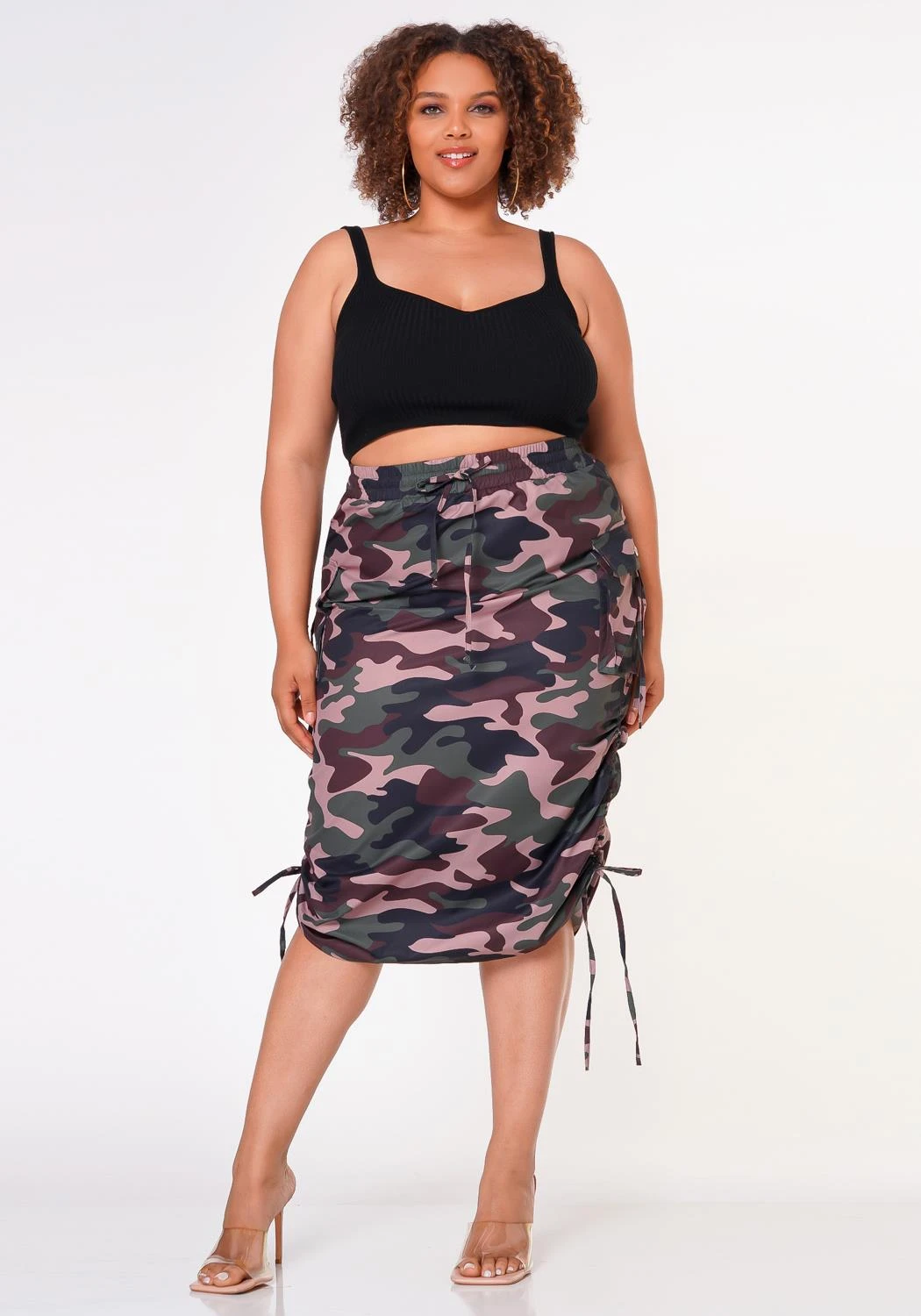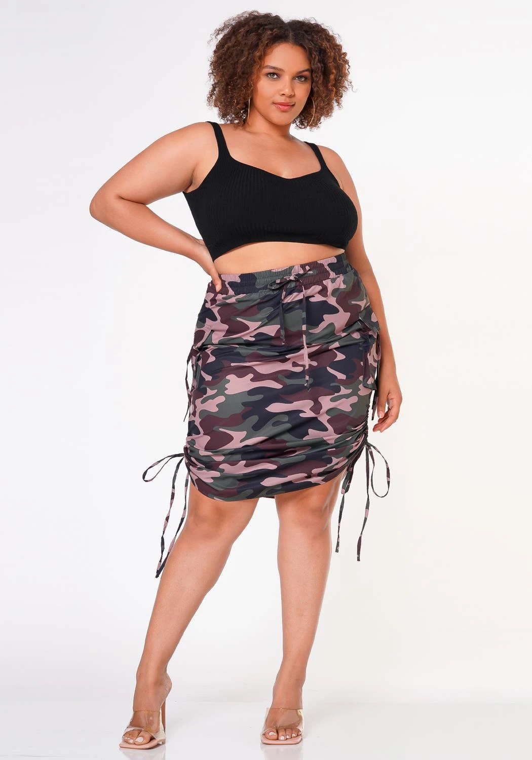 Trendy plus size women’s adjustable drawstring side skirt, you can wear it as mini skirt to midi skirt.
