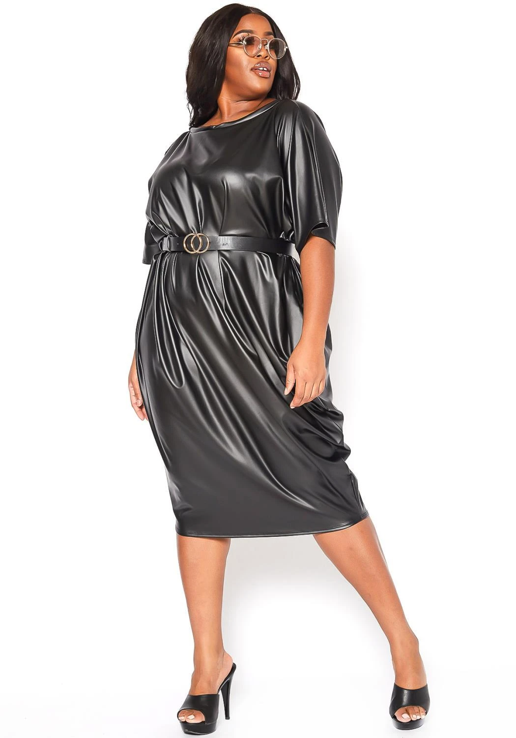 Plus Size Faux Leather Oversized Shirt Dress
