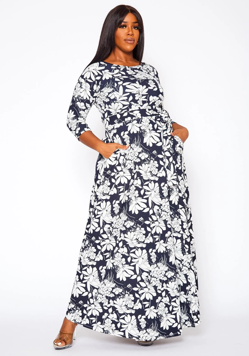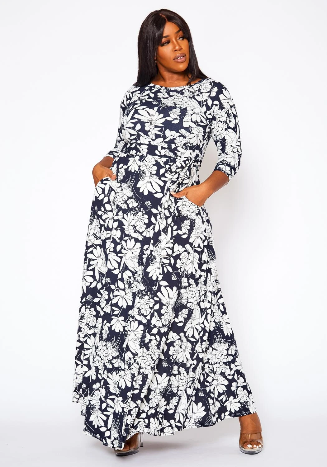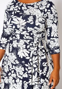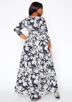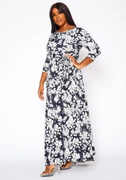 Plus Size Fit & Flare Floral Print Belted Maxi Dress