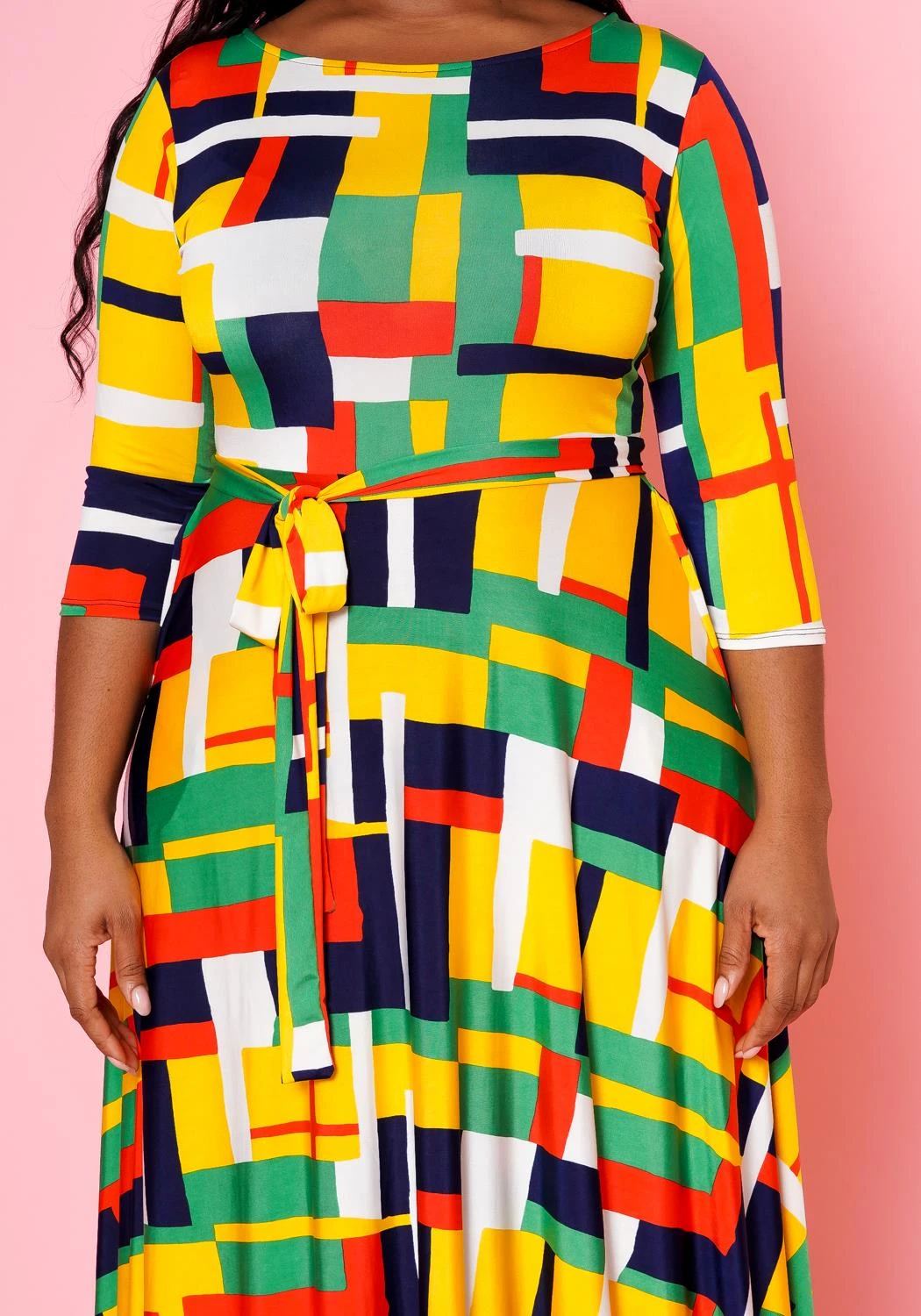 Plus Size Geometric Pattern Fit & Flare Maxi Dress