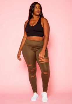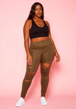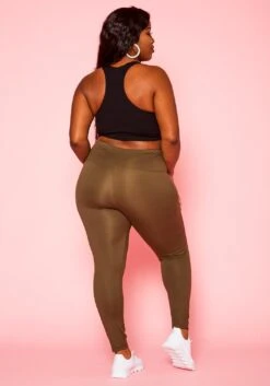 Plus size women’s high waist leggings with slit details and butter soft fabric.