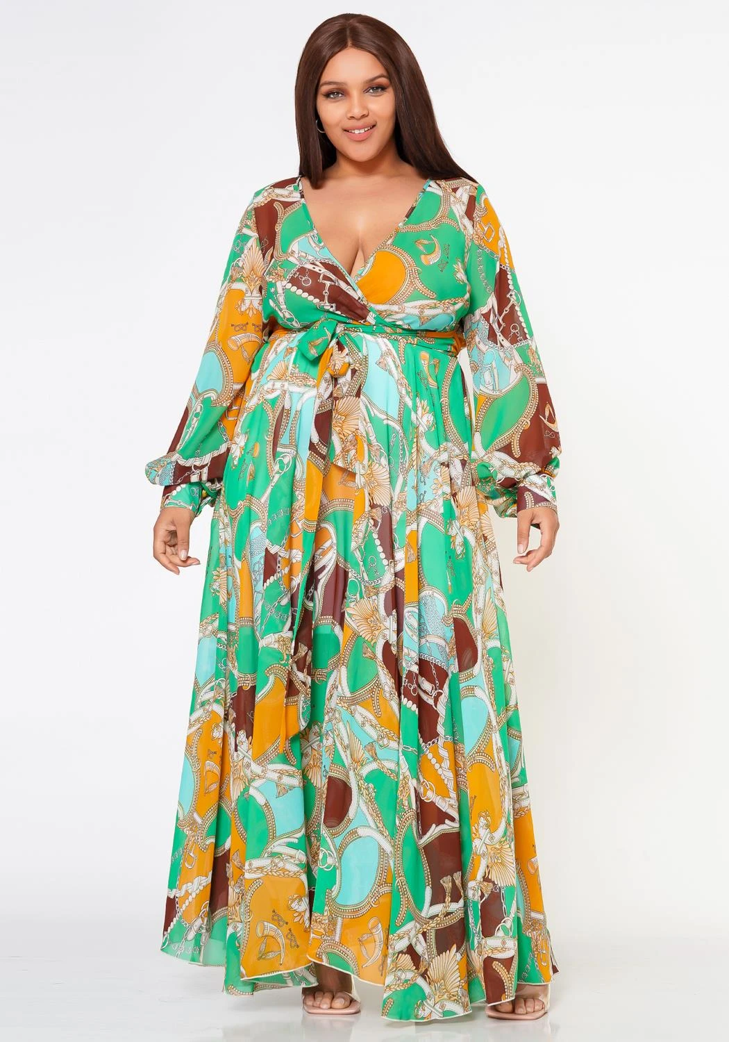 Plus Size Multi Chainlink Pattern Fit & Flare Maxi Dress