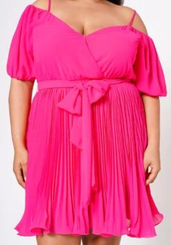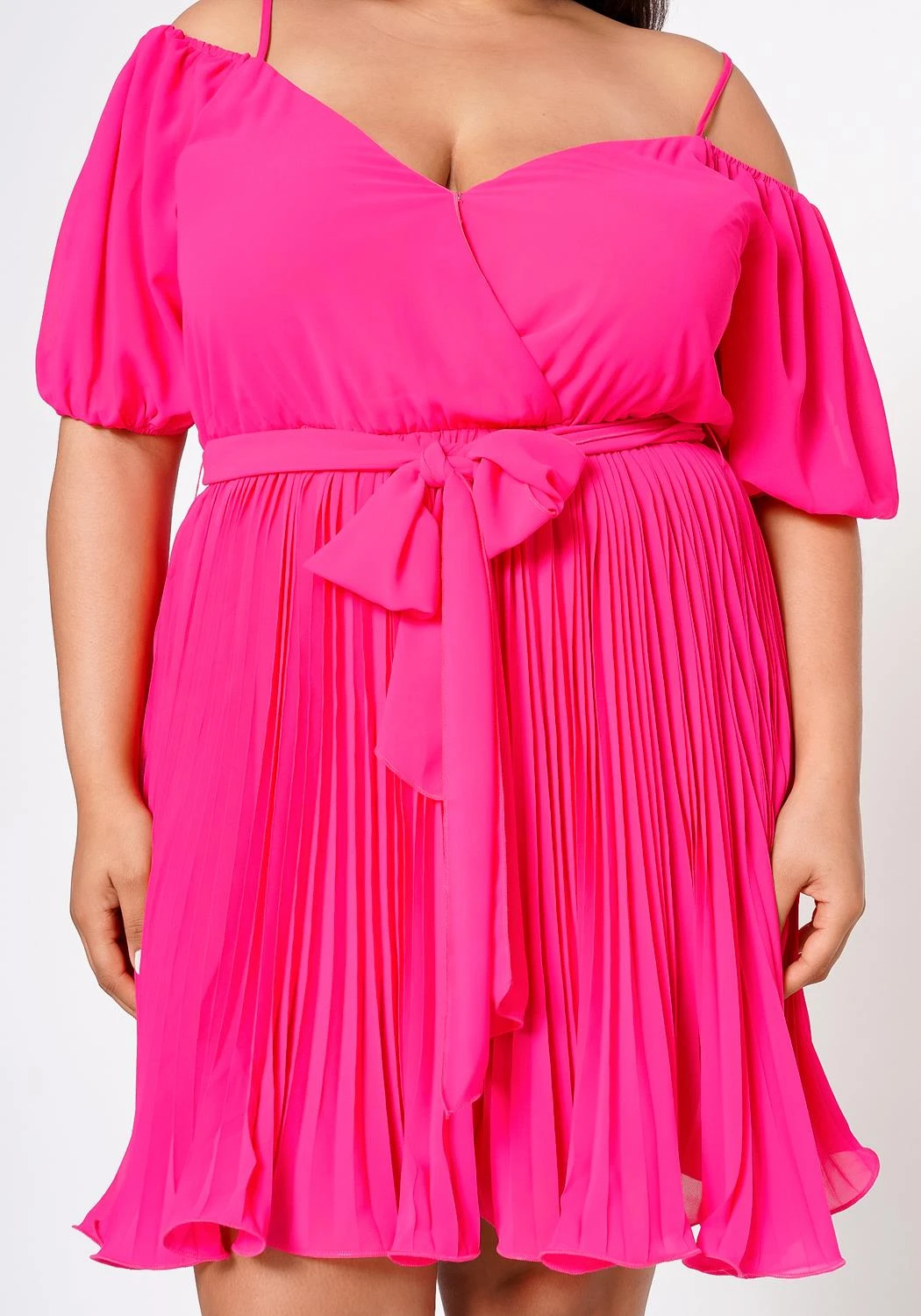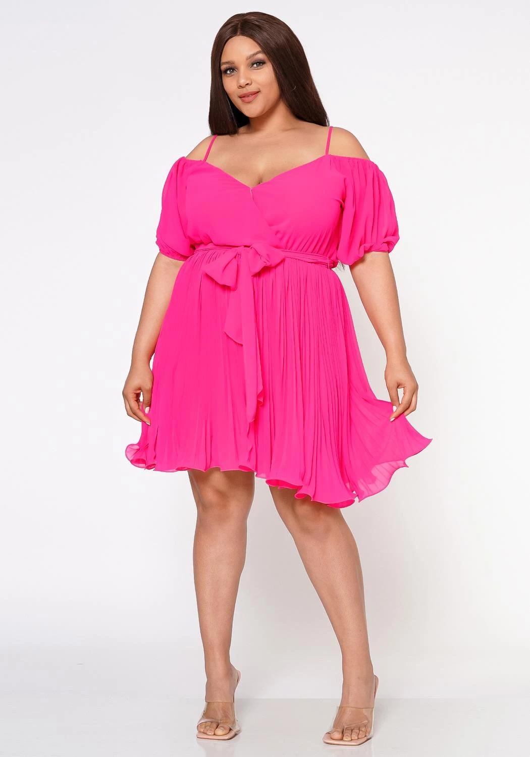 Introducing our stunning off shoulder pleated mini dress with a flowy and comfortable fit, the perfect Spring season dress that features a flattering off shoulder neckline with supporting adjustable shoulder straps, a waist tie ascent and pleated detailing that adds a touch of elegance to your look. The mini length of the dress makes it a great choice to style with heels or keep it casual with sandals.