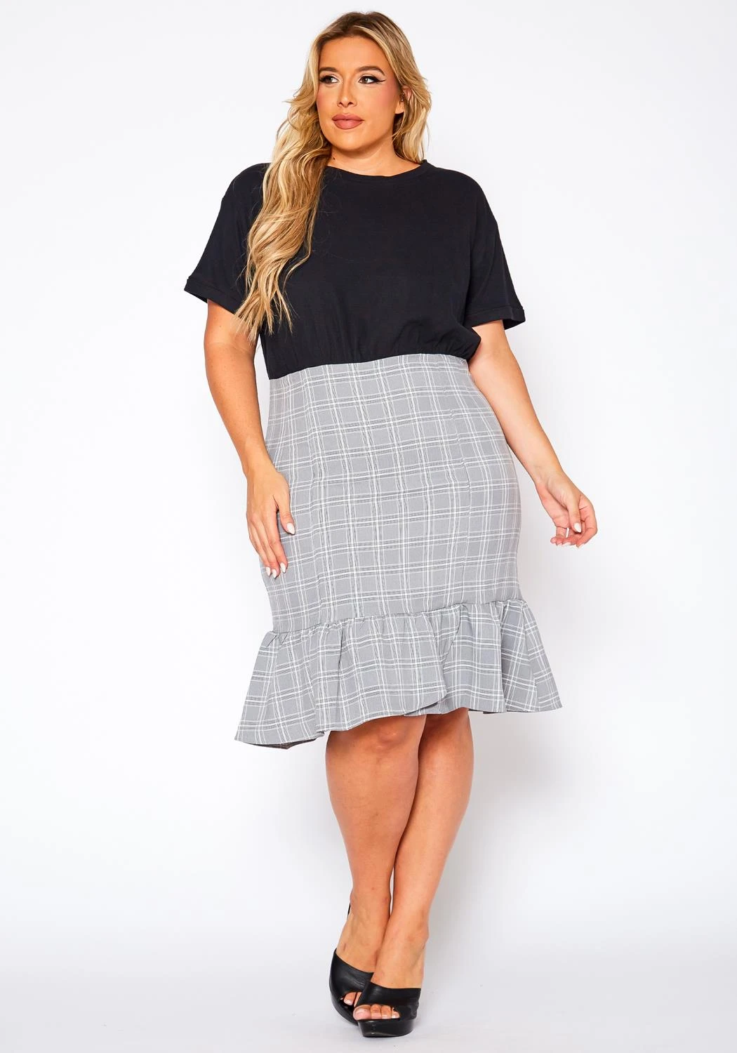 Plus Size Plaid Print Ruffle Flare Skirt