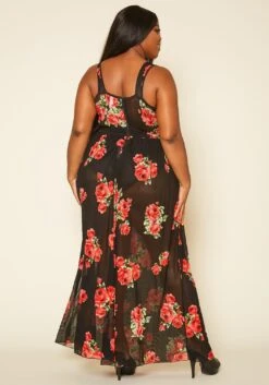 Plus size women’s dress in tank maxi style, featuring a front heart shape neckline, corset hem, sheer hem with bottom under layer underwear and back zipper closure.