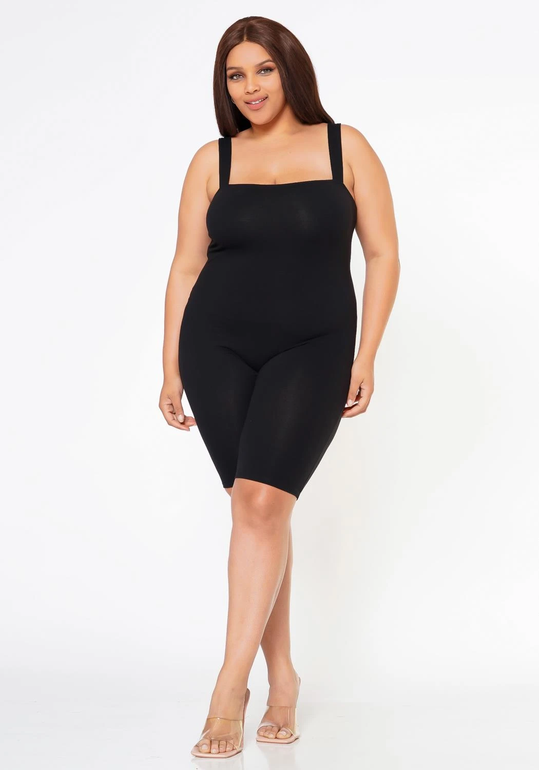 Slay your day in our comfy cami romper which comes in a solid color, square neck style, cami shoulder straps and biker length design.