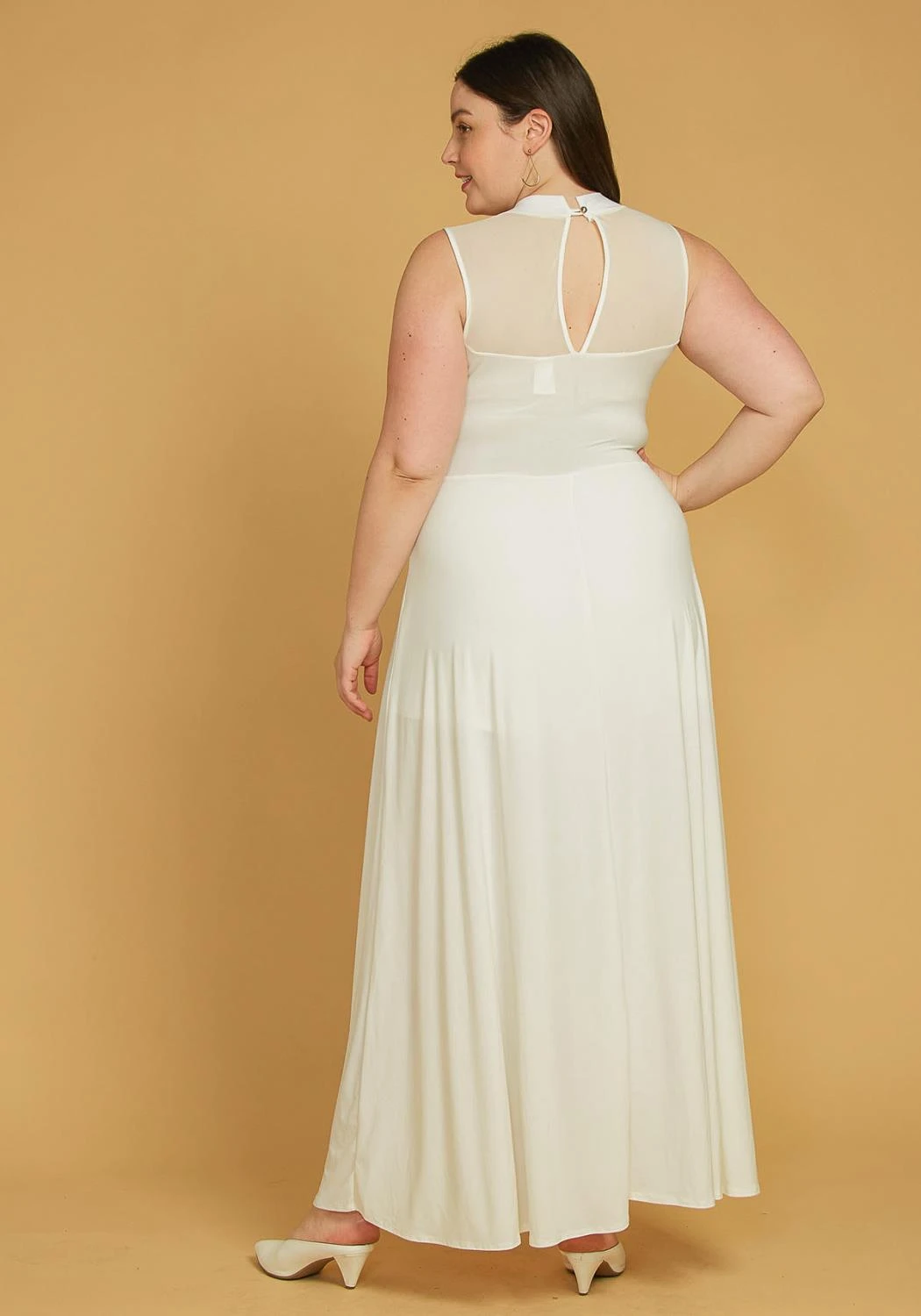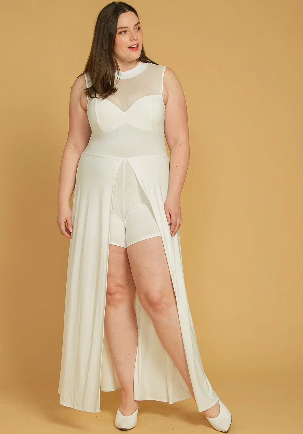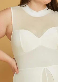 Plus Size Sleeveless Mesh Accent Romper With Cape Hem