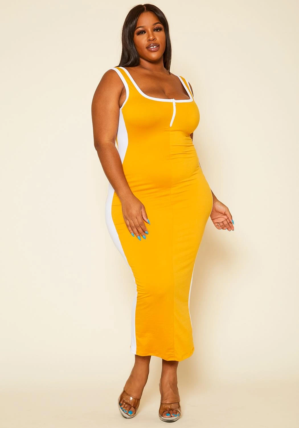 Plus size women’s effortless maxi dress with tape striped side design, square neckline.