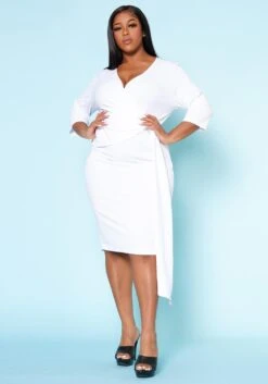 Plus Size V Neck Overlay Drape Mini Dress
