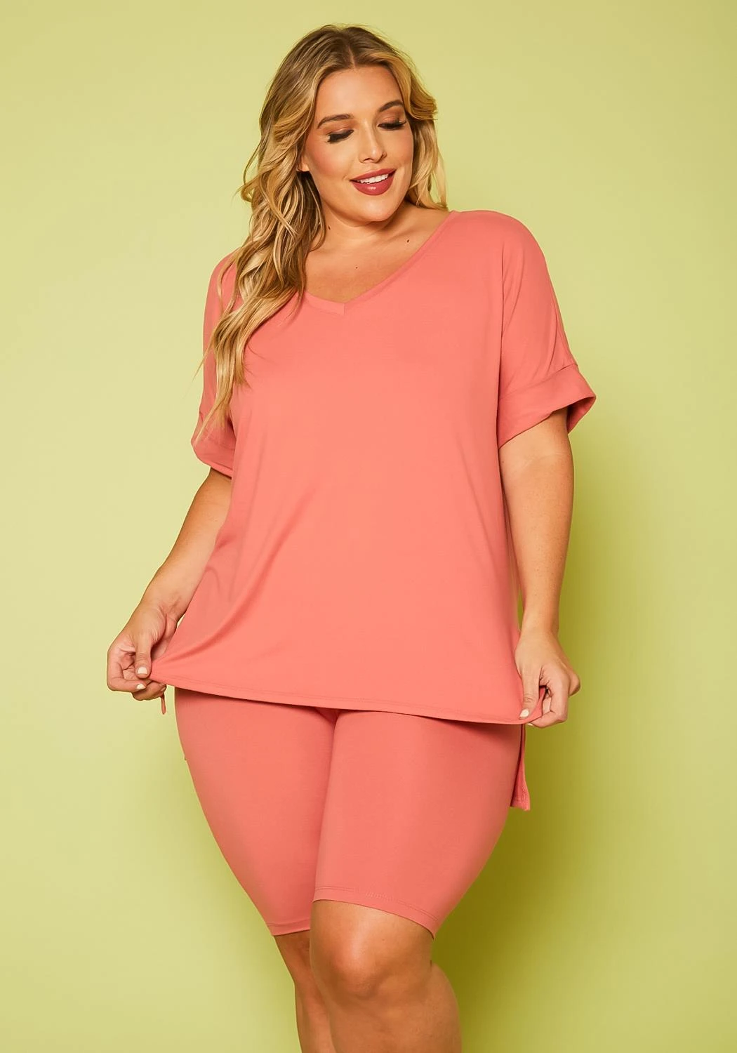 Plus Size V-Neck Tee Shirt & Biker Shorts Set