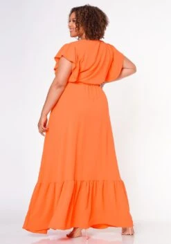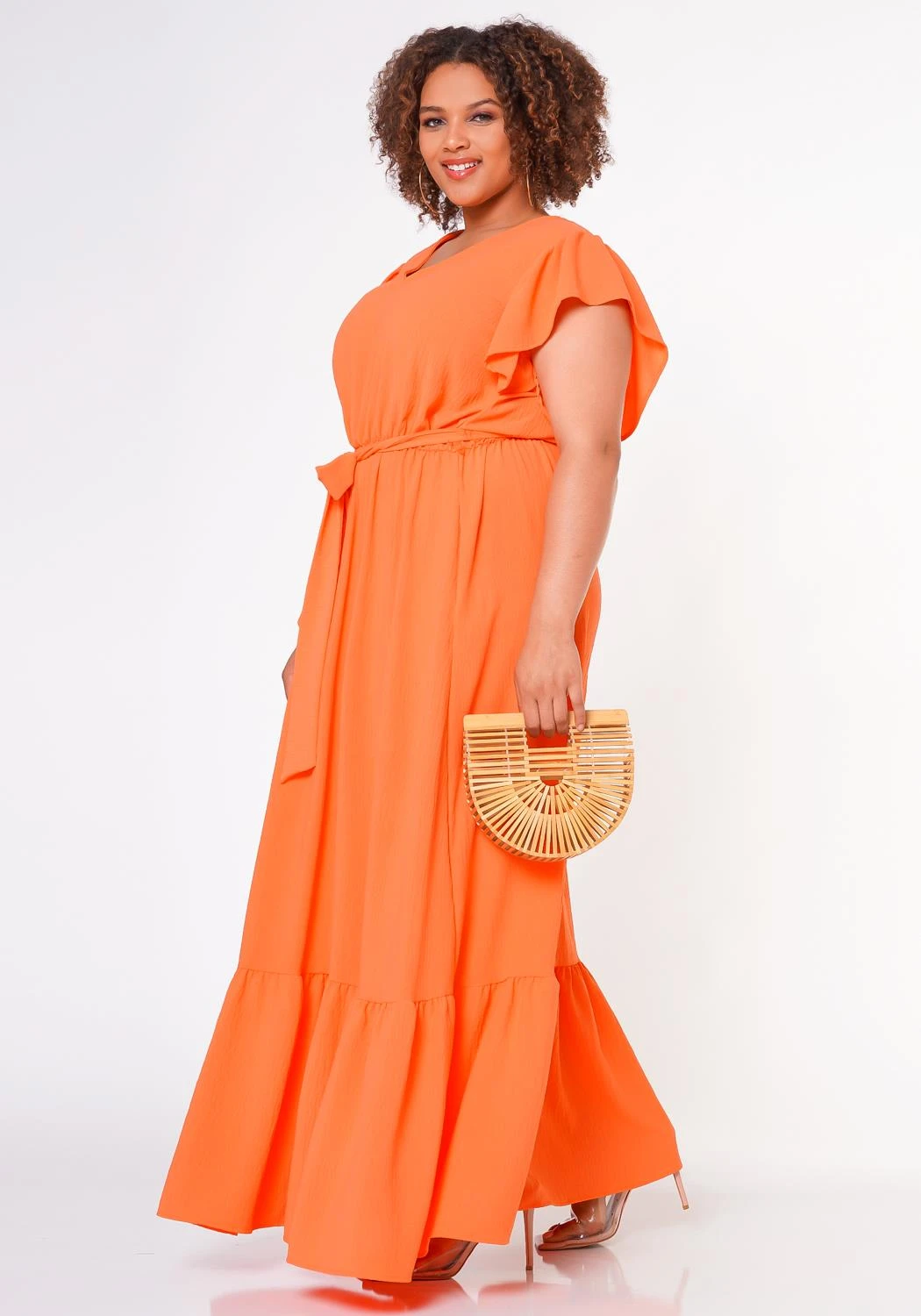 A perfect comfortable short sleeve spring dress with ruffled detailing and waist tied bow.